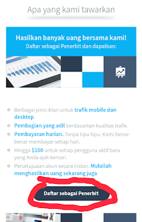 Sobat harus daftar ke ylliX dahulu, dengan klik DISINI. Sobat juga bisa daftar dengan membuka yllix.com, dan pilih “Daftar sebagai Publisher”.