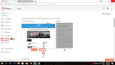 Sobat harus login ke dashboard Blogger, kemudian pilih Tema lalu pilih Edit HTML. Untuk lebih jelasnya, bisa lihat gambar diatas.