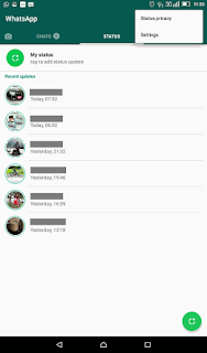 - Di jendela Status, lakukan tap pada tombol menu di kanan atas. Lalu, pilihlah Status Privacy.