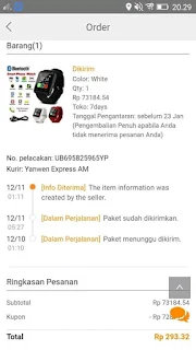 10. Selesai, kita tinggal menunggu barang dikirim, Estimasi pengiriman barang 15 - 45 hari, Karena free shipping dan gratis, sehingga barang dikirim dari luar negeri jadi agak lama pengirimannya.